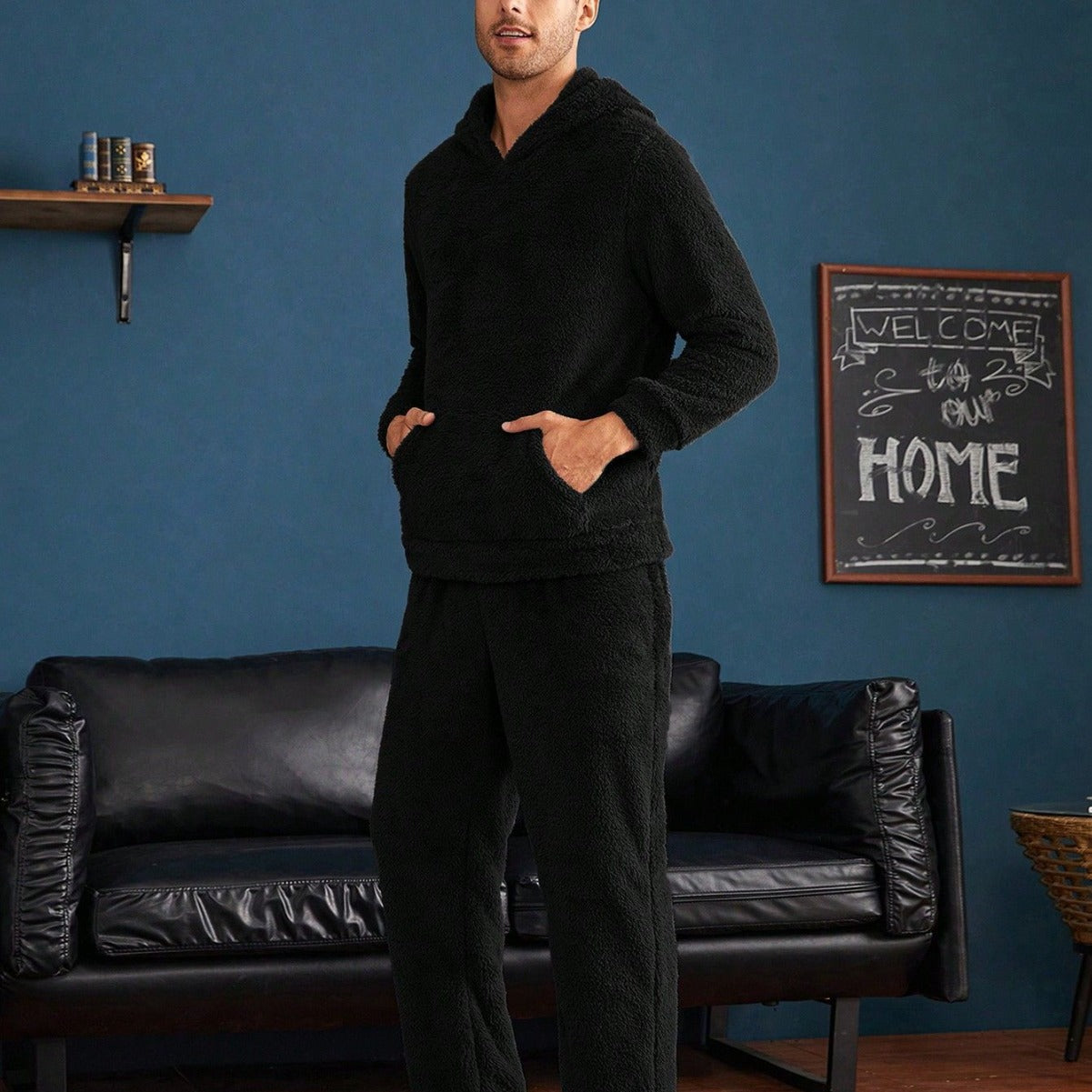 Factory direct sales European and American cross-border men's loose casual coral fleece home clothes hooded pajamas set 24 autumn and winter