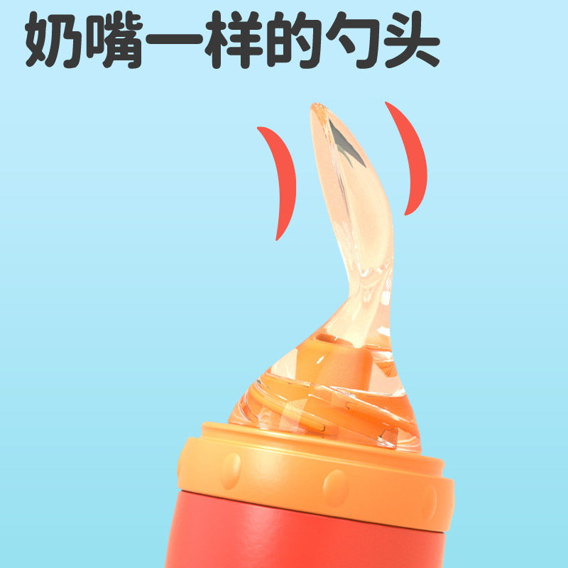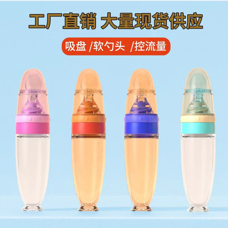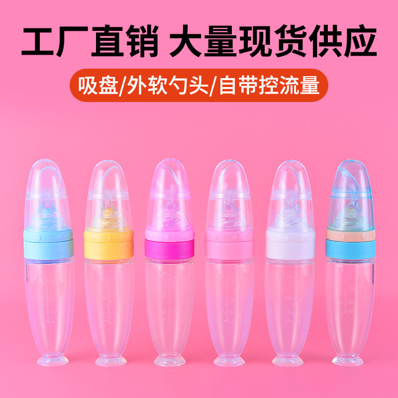 Factory direct sales suction cup rice cereal bottle baby food spoon children's milk bottle nano silver soft spoon head rice cereal bottle