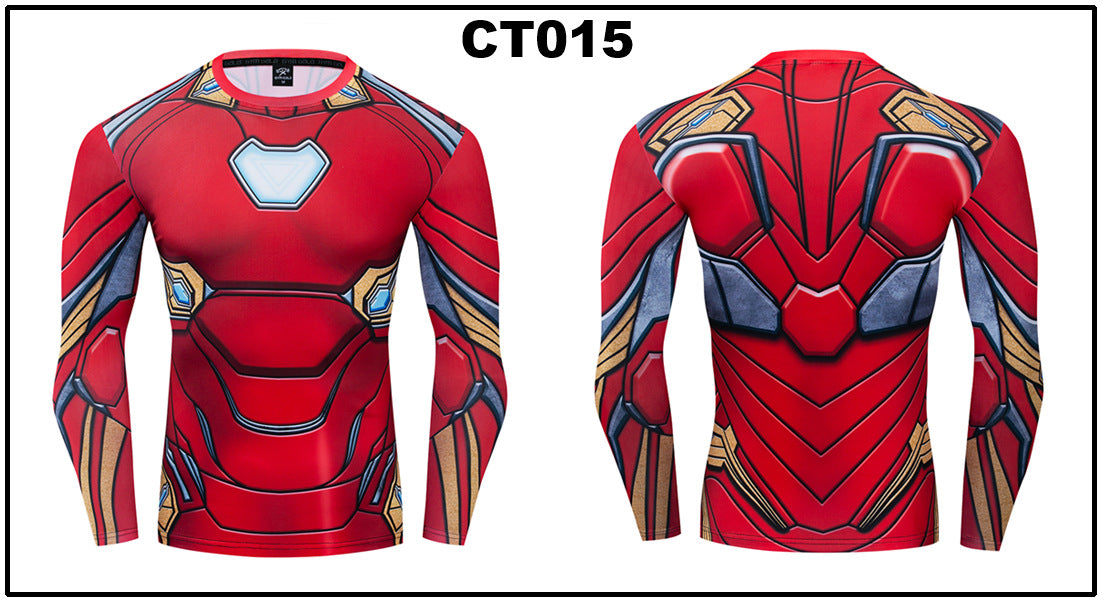 Foreign trade Amazon hot sale Avengers Marvel DC same clothing sports fitness quick-drying clothes long-sleeved T-shirt