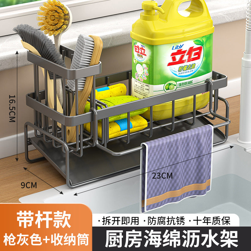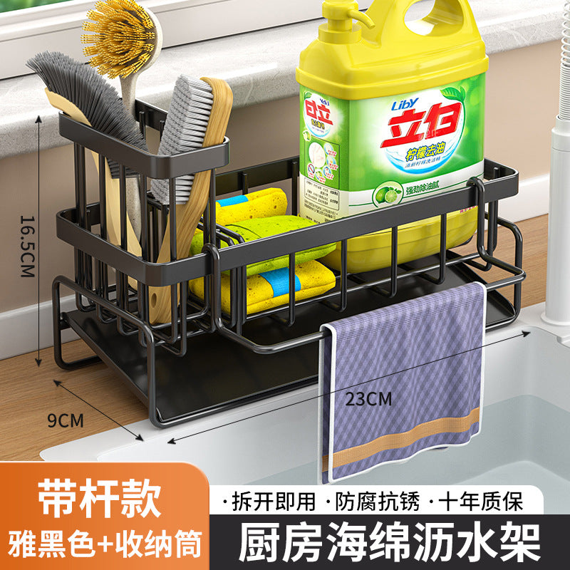 Kitchen household drain rack on the wall multi-function drain rack new multi-layer carbon steel rag storage rack